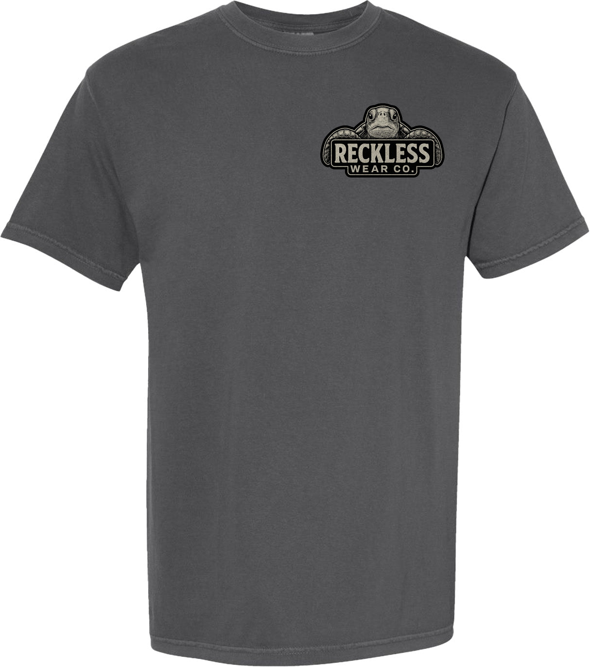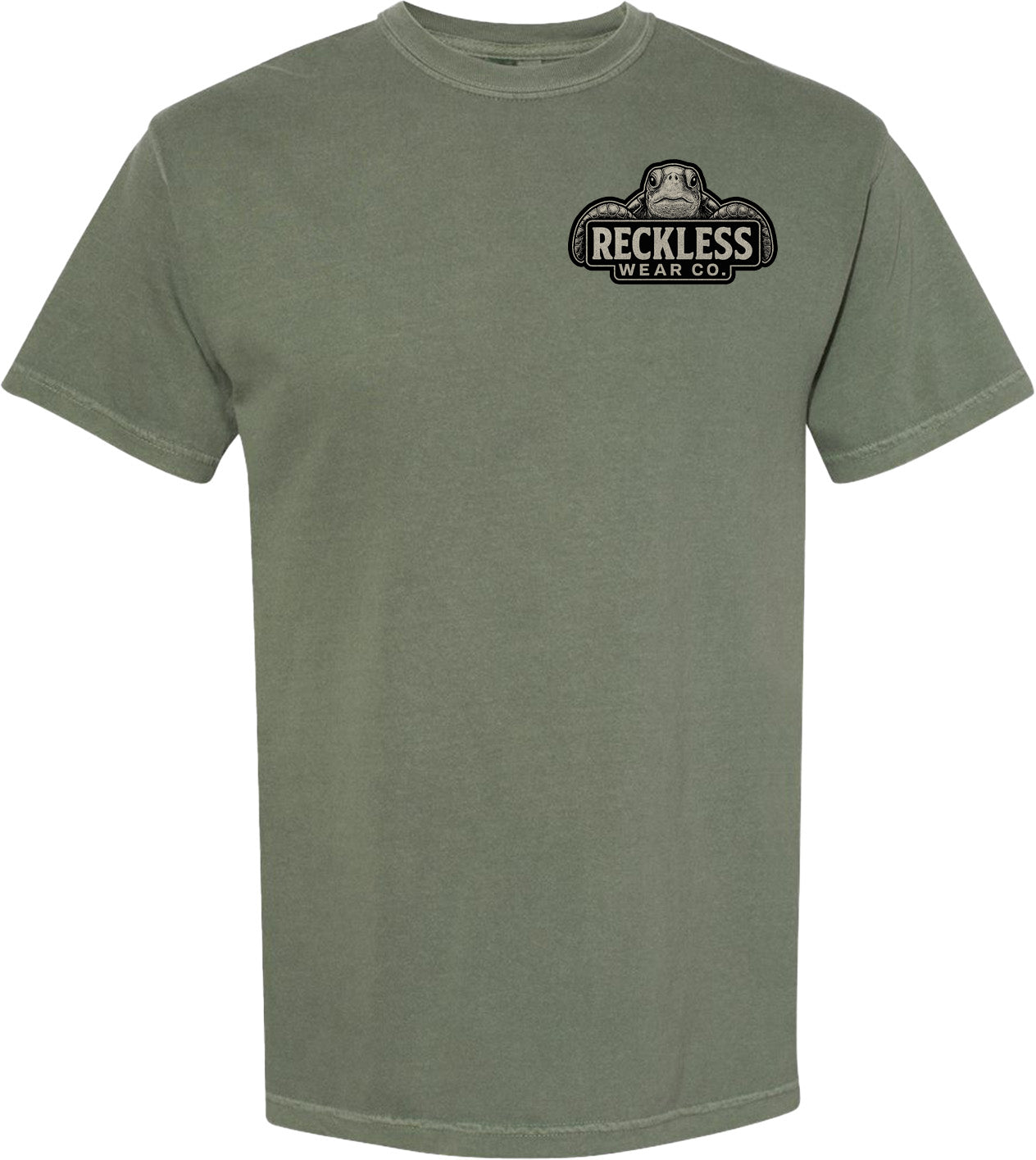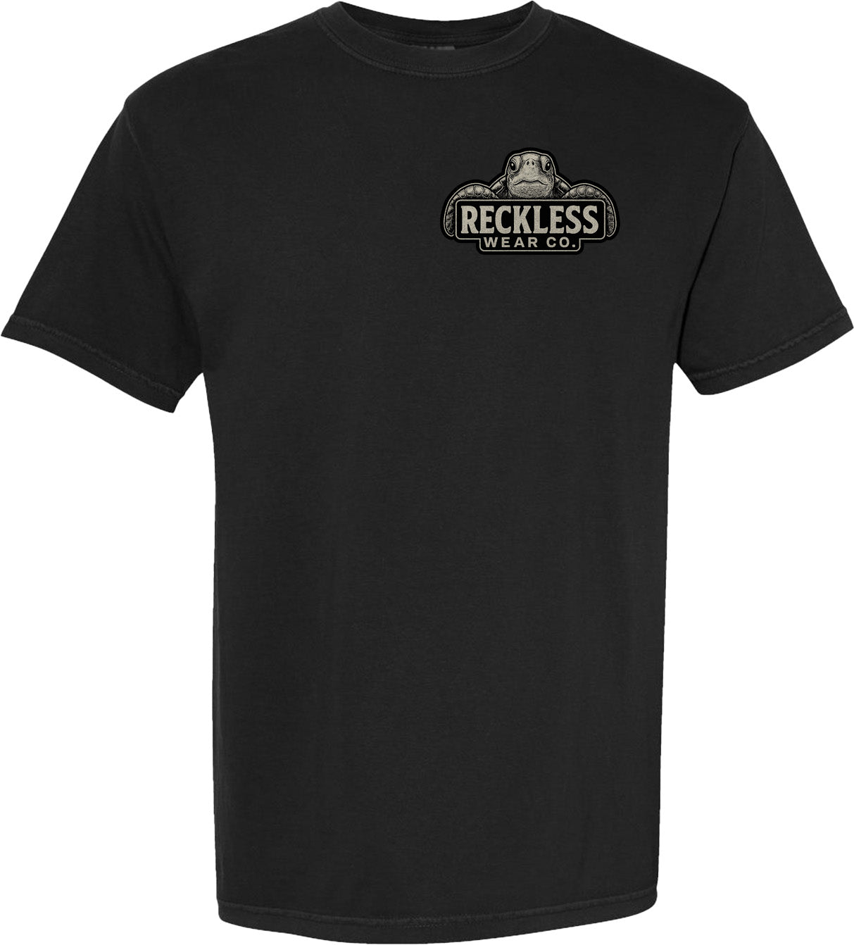 Reckless Wear Turtle on the front chest, and large print on the back