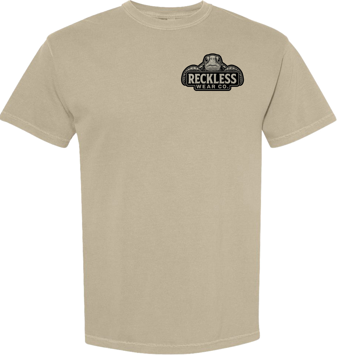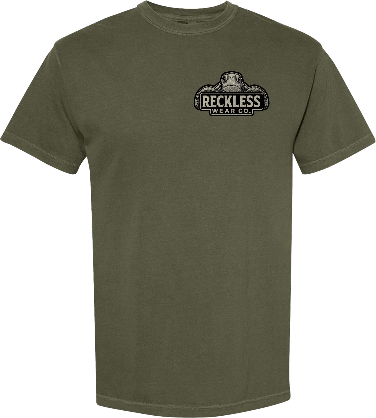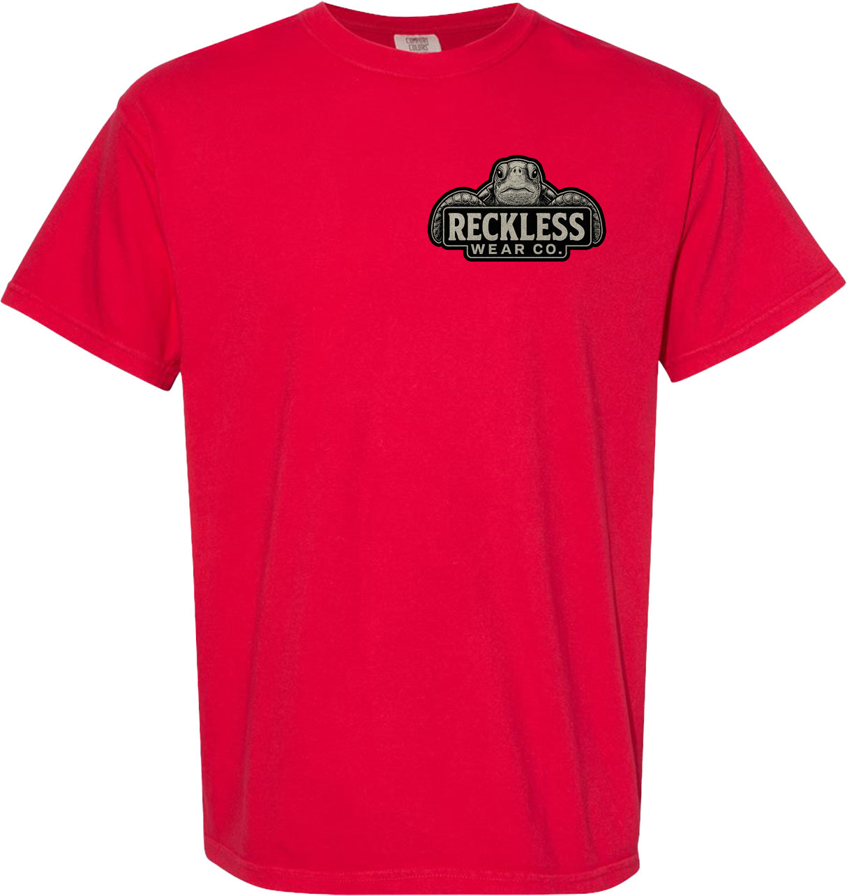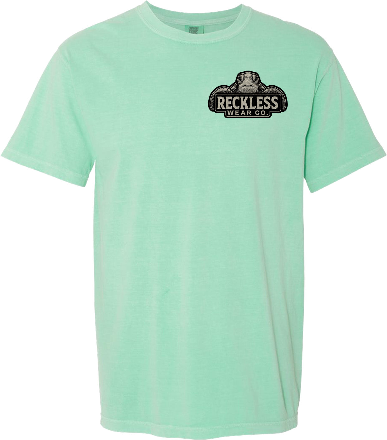 Reckless Wear Turtle on the front chest, and large print on the back